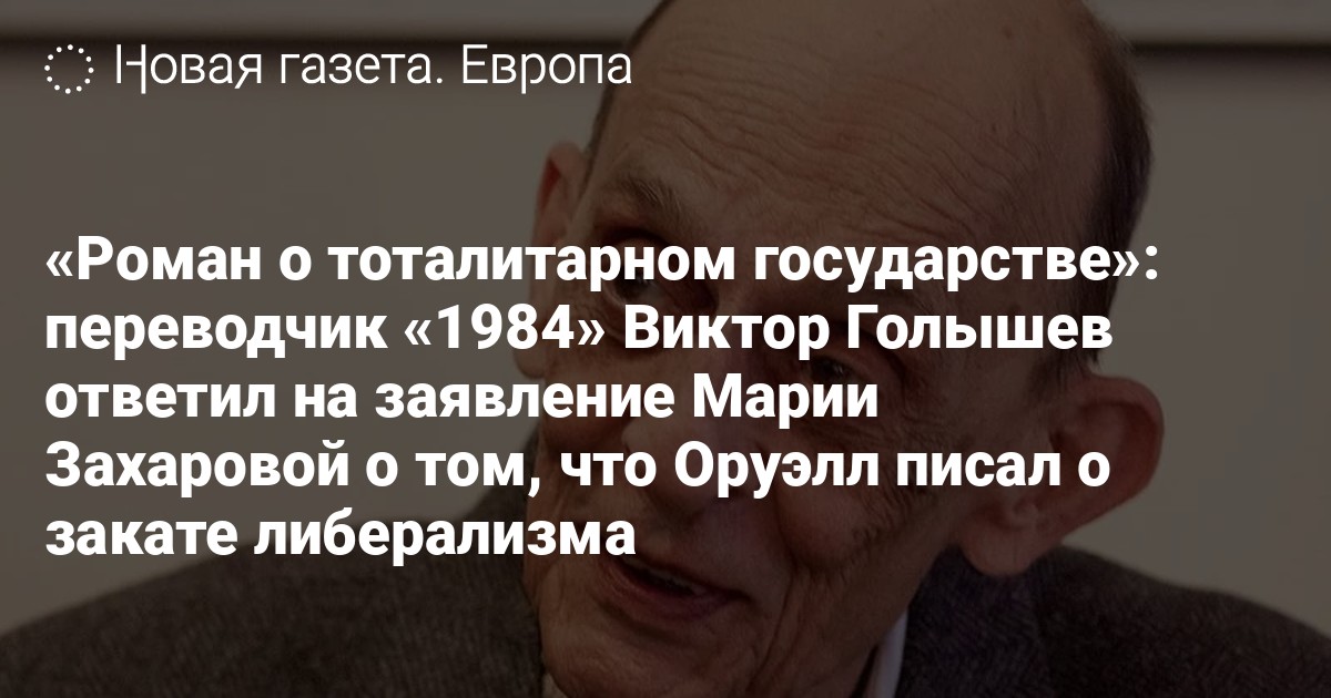 Переводчик англо-американской литературы Виктор Голышев ответил официальному представителю МИД РФ Марии Захаровой, которая утверждает, что Джордж Оруэлл описал в романе-антиутопии «1984» не тоталитаризм, а «конец либерализма». Комментарий Голышева опубликовал телеграм-канал «Подъем».