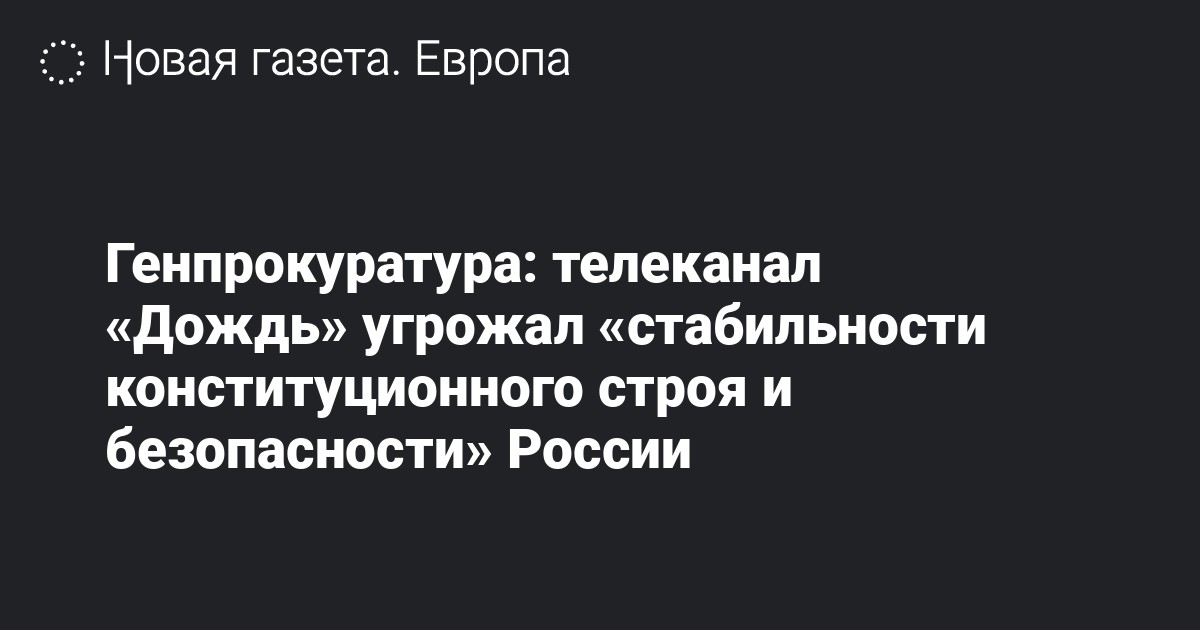 На заседании Тверского суда Москвы об оспаривании телеканалом «Дождь» блокировки на территории РФ представитель Генпрокуратуры заявил, что он угрожал «стабильности конституционного строя и безопасности» страны. Об этом сообщает РИА Новости. Суд отклонил иск телеканала об оспаривании блокировки.