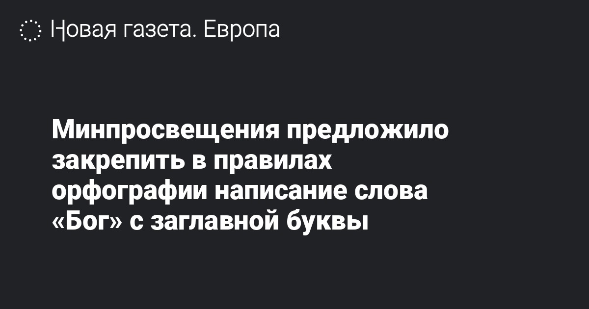 Министерство просвещения предложило закрепить в правилах орфографии написание слова «Бог», а также других относящихся к религии слов, с заглавной буквы. Об этом сообщает ТАСС со ссылкой на главу министерства Сергея Кравцова.