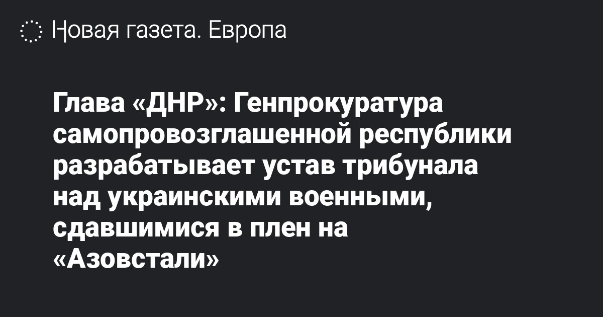 Глава самопровозглашенной Донецкой народной республики Денис Пушилин заявил о подготовке ее Генпрокуратурой устава трибунала над украинскими военными, которые сдались в плен на «Азовстали» в Мариуполе. Его слова приводит РИА Новости.