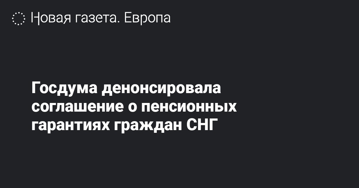 Государственная дума денонсировала соглашение о гарантиях прав граждан СНГ в области пенсионного обеспечения. Об этом сообщает «Интерфакс» со ссылкой на документ.