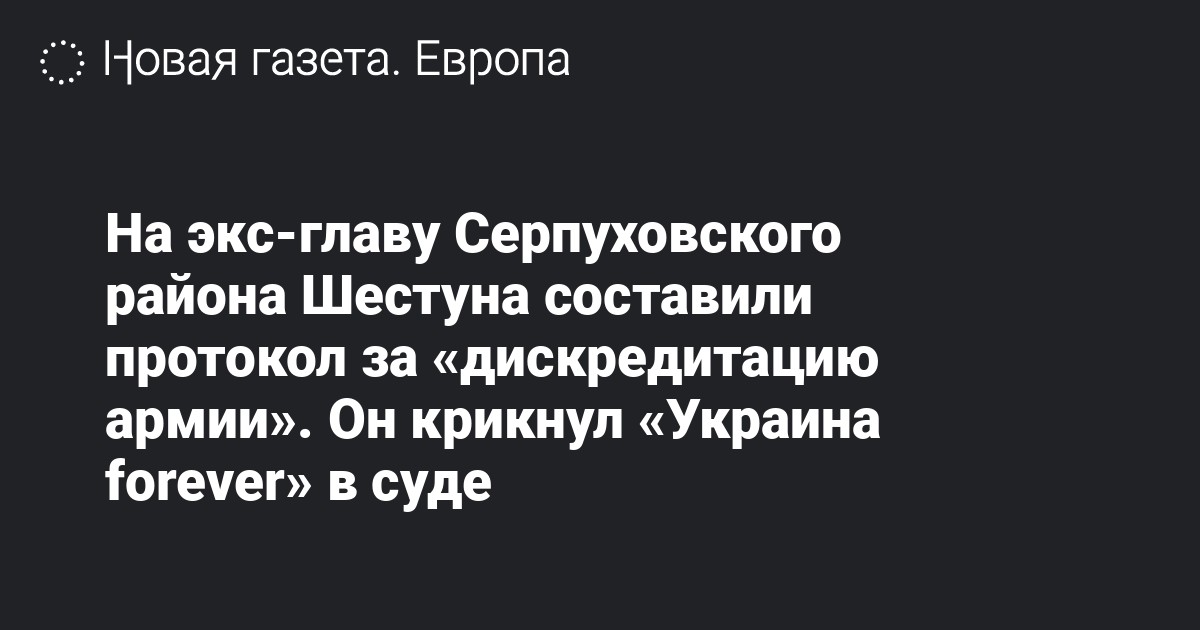 Правоохранители составили административный протокол за дискредитацию вооруженных сил России (ст. 20.3.3. КоАП) на приговоренного к 15 годам колонии экс-главу Серпуховского района Подмосковья Александра Шестуна. Об этом «Медиазоне» рассказала его супруга Юлия.