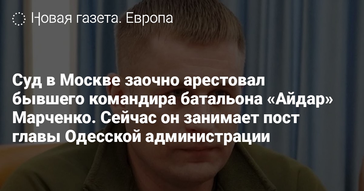 Басманный суд Москвы заочно арестовал бывшего командира украинского батальона «Айдар» Максима Марченко, который сейчас занимает пост председателя Одесской областной администрации. Об этом сообщает «Интерфакс» со ссылкой на пресс-службу суда.