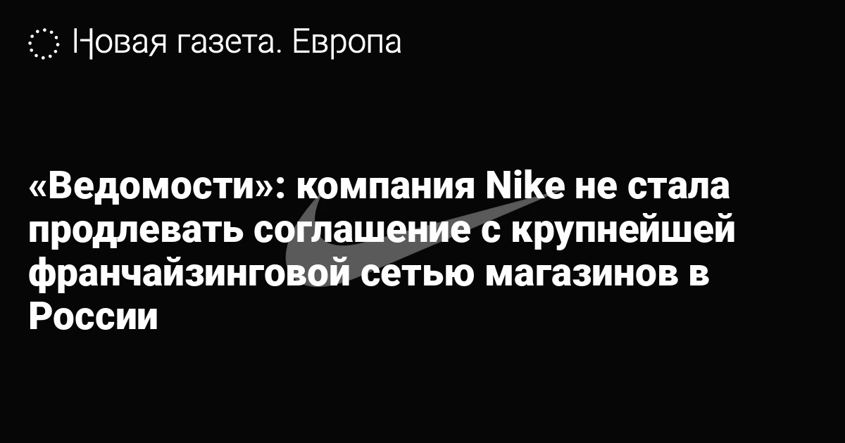 Компания Nike не будет продлевать франчайзинговое соглашение с Inventive Retail Group (IRG) и сворачивает бизнес в России, сообщают «Ведомости» со ссылкой на письмо президента IRG Тихона Смыкова сотрудникам компании.