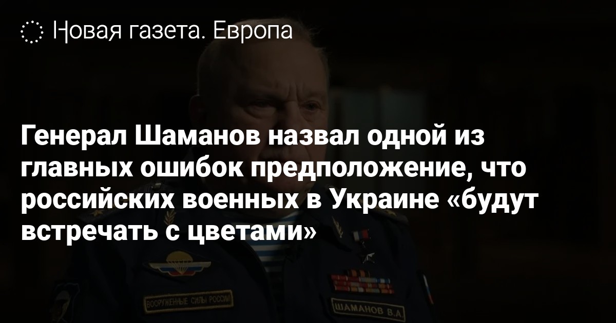 Генерал ВС РФ, депутат Госдумы Владимир Шаманов назвал одной из главных ошибок войны предположение, что российских военных в Украине «будут встречать с цветами». Об этом он сообщил в интервью Оксане Кравцовой, внимание на него обратило издание РБК.