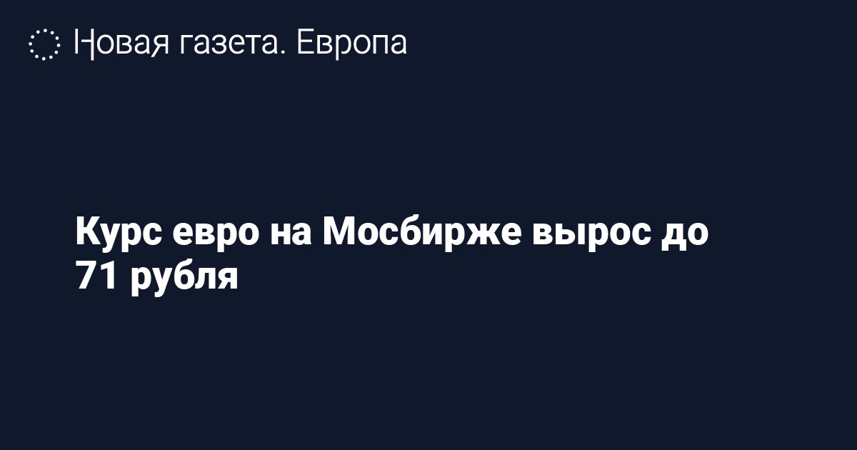 Курс евро на Мосбирже продолжил расти и поднялся до 71,2 рубля. Это максимум с 11 мая, свидетельствуют данные торгов.