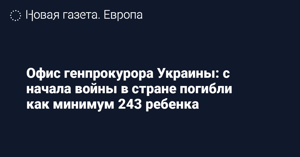 С начала войны в Украине погибли по крайней мере 243 ребенка, как минимум 444 получили ранения. Об этом сообщает офис генпрокурора Украины.