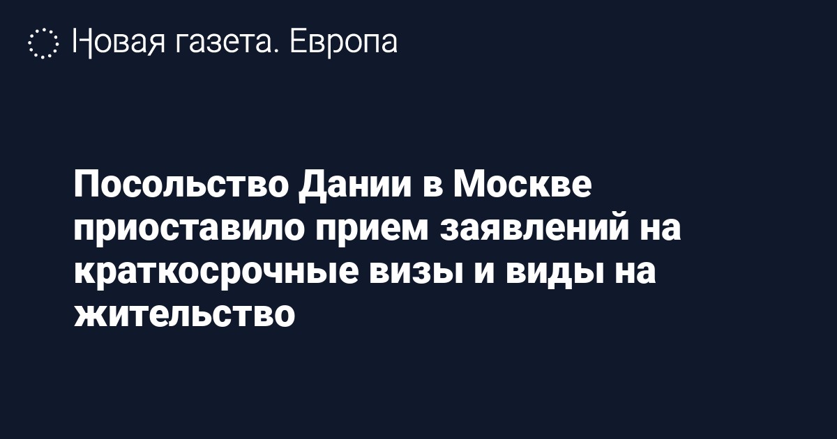 Посольство Дании в Москве приостановило прием заявлений на получение краткосрочных виз и видов на жительство. Об этом говорится на сайте датской дипмиссии.