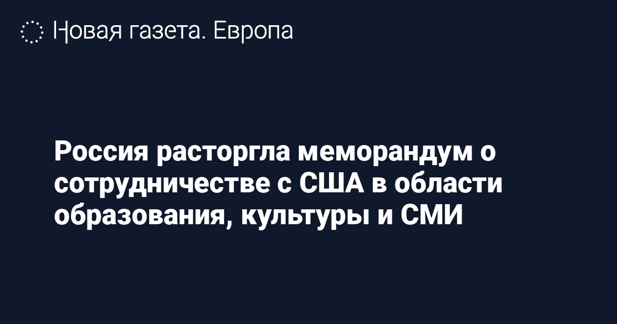 Кабинет министров России принял предложение МИДа о расторжении меморандума о принципах сотрудничества с США в области образования, культуры и СМИ. Об этом сообщается на официальном портале правовой информации.
