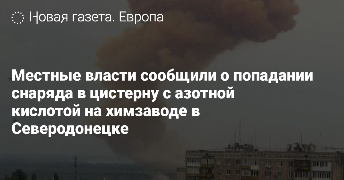 При обстреле Северодонецка в Луганской области снаряд попал в цистерну с азотной кислотой на химическом заводе, сообщил глава областной администрации Сергей Гайдай.