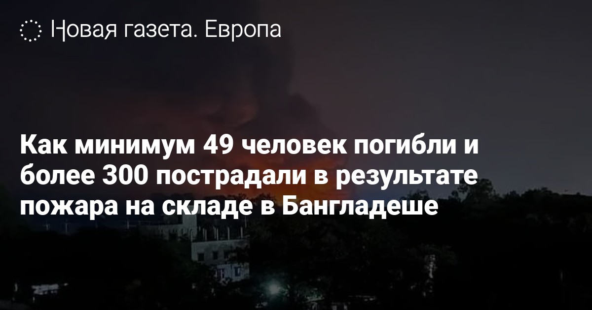 Как минимум 49 человек погибли и более 300 пострадали в результате пожара на складе недалеко от города Читтагонг на юго-востоке Бангладеша. Последние данные о жертвах происшествия приводит Al Jazeera.