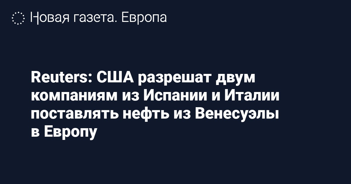 Госдепартамент США разрешит итальянской компании Eni SpA и испанской Repsol SA начать поставки венесуэльской нефти в Европу, несмотря на введенные против Венесуэлы санкции. Об этом сообщает Reuters со ссылкой на пять источников.