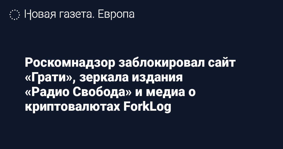 Роскомнадзор заблокировал сайты украинских медиа «Грати» и «Страна.ua», а также зеркала издания «Радио Свобода» и СМИ о криптовалютах ForkLog. Об этом свидетельствуют данные в реестре заблокированных сайтов «Роскомсвободы».