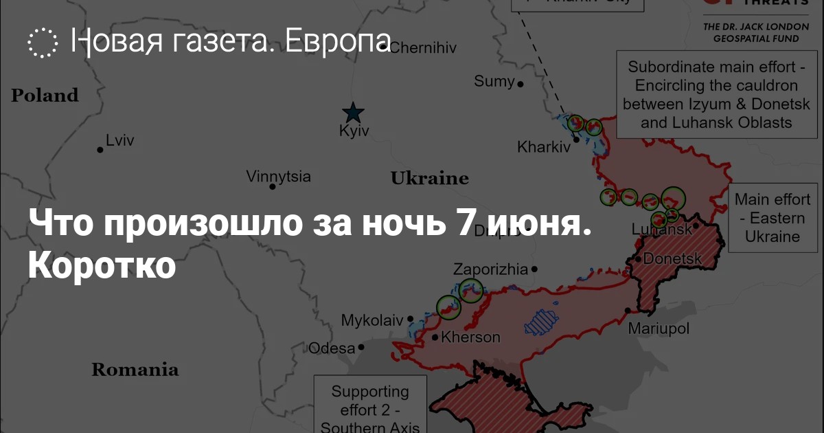 - Идет уже 104-й день войны России против Украины. Российские силы сохраняют контроль над большей частью Северодонецка, однако точная ситуация в городе остается неясной, так как контроль часто переходит из рук в руки, заявили в Институте изучения войны (ISW). В условиях ожесточенных уличных боев трудно понять, кто что контролирует. По данным экспертов, ограниченные украинские контратаки вынудили российские войска сосредоточиться на удержании оборонительных рубежей к северу от Харькова.