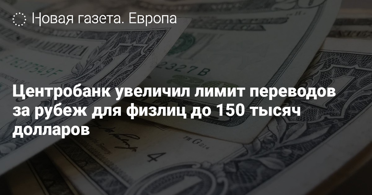 Центробанк увеличил лимит валютных переводов за рубеж для россиян до 150 тысяч долларов в месяц. Об этом сообщает пресс-служба регулятора.