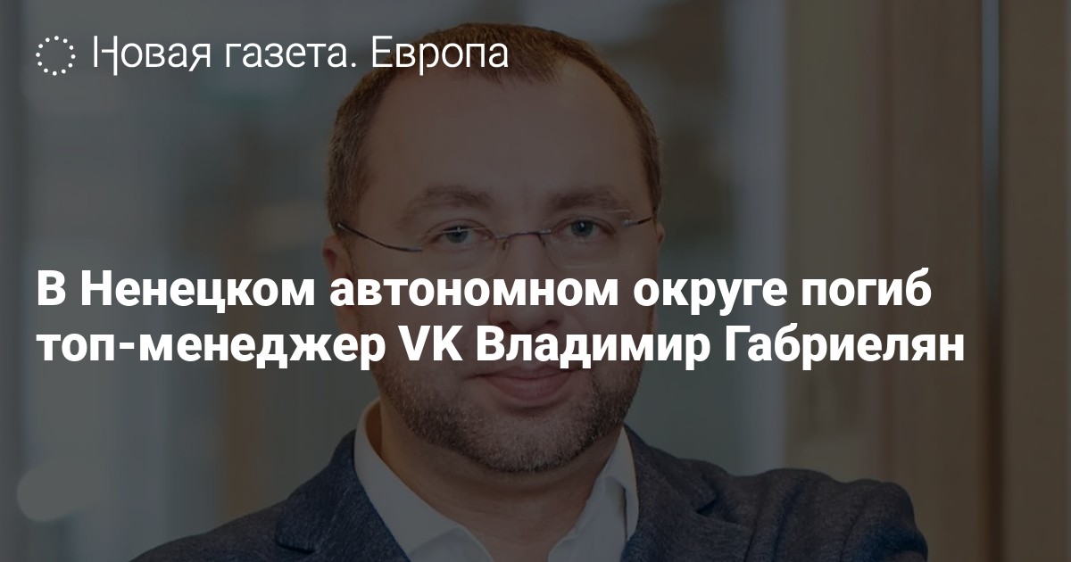 Первый заместитель генерального директора VK Владимир Габриелян погиб «в результате трагического происшествия», сообщает РБК со ссылкой на пресс-службу компании.