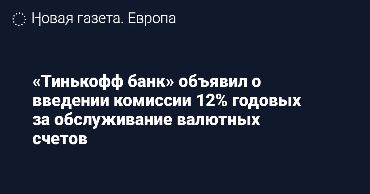 «Тинькофф банк» объявил, что С 23 июня вводит плату за обслуживание счетов в иностранной валюте — в долларах США, евро, фунтах стерлингов и швейцарских франках. Об этом сообщается в телеграм-канале банка.