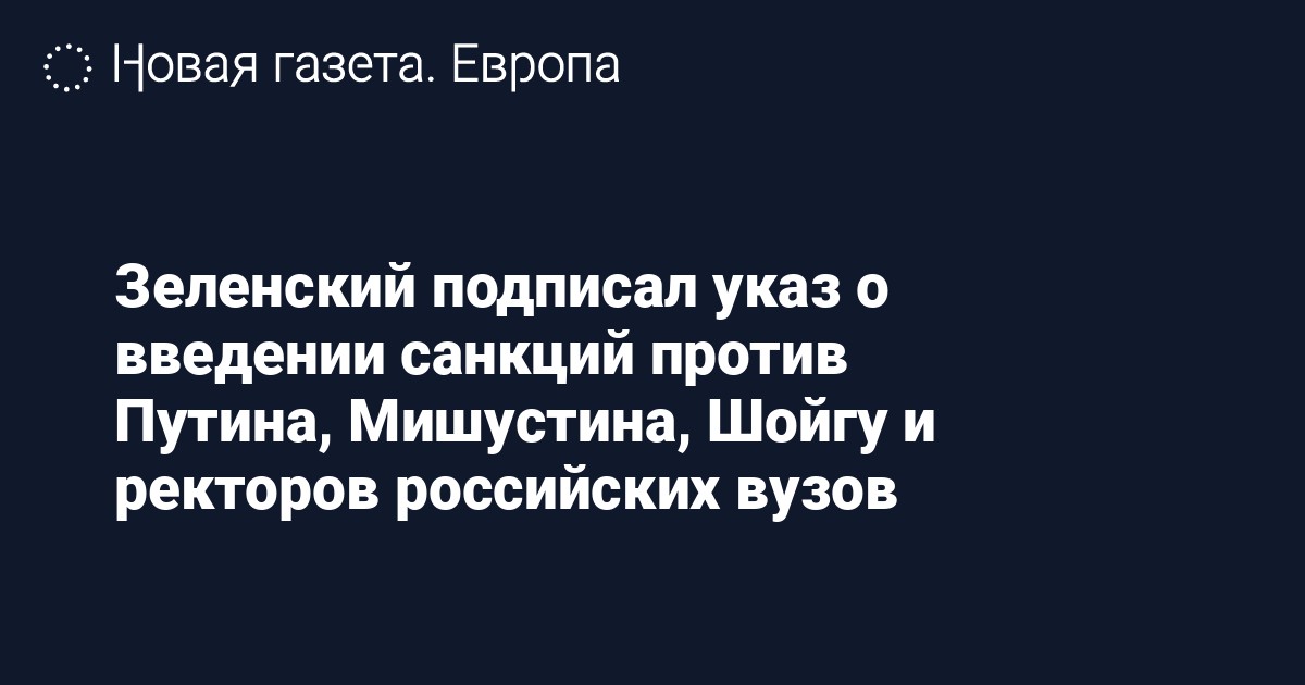 Президент Украины Владимир Зеленский подписал указ о введении санкций против президента России Владимира Путина и членов правительства. Документ опубликован на официальном сайте Зеленского.