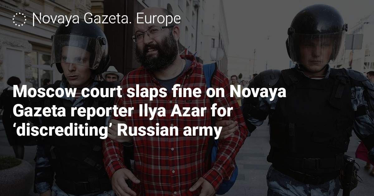 A court in Moscow has issued a fine to the tune of 60,000 rubles (approximately €980) to Novaya Gazeta reporter Ilya Azar for “discrediting” the Russian armed forces and calls for unsanctioned public rallies, attorney Leonid Solovyev told Novaya Gazeta. Europe.
