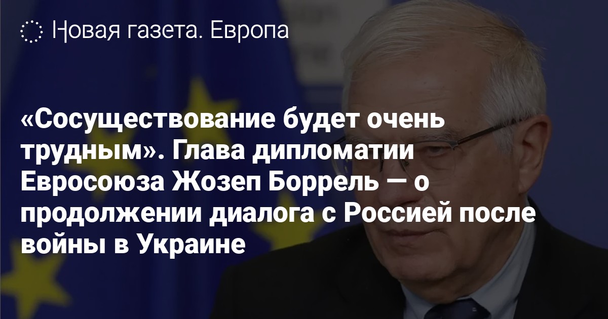 Евросоюзу придется сосуществовать с Россией после прекращения войны в Украине, несмотря на военные преступления и агрессию, заявил верховный представитель ЕС по иностранным делам Жозеп Боррель в интервью Le Journal du Dimanche, опубликованном в том числе на сайте ЕС.