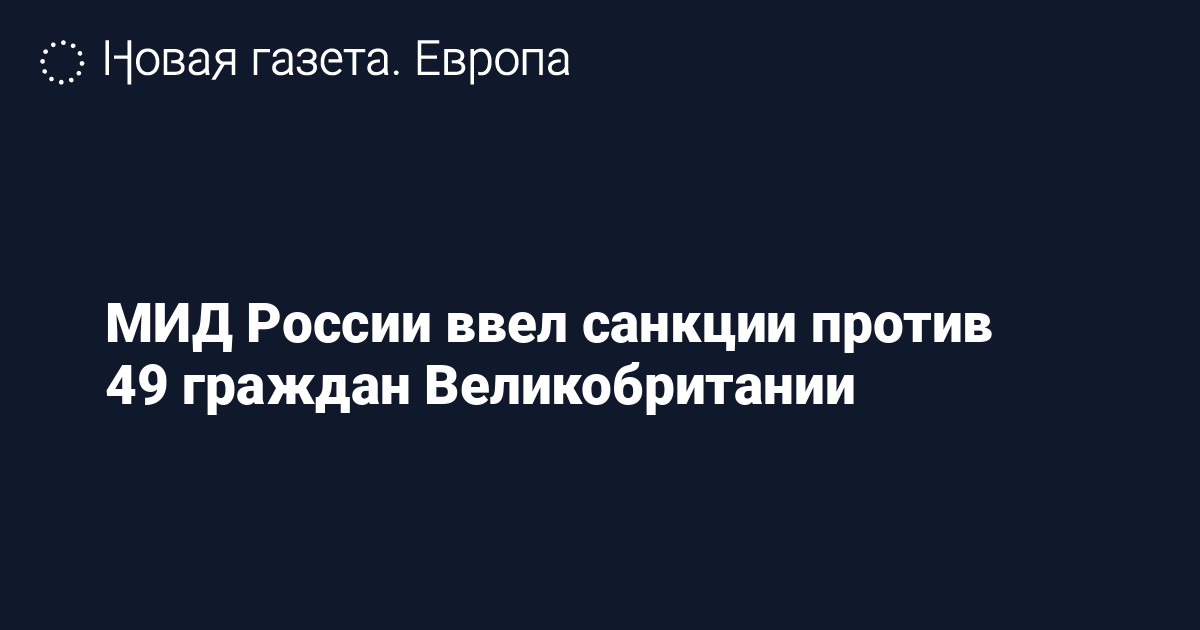 Министерство иностранных дел ввело персональные санкции против 49 граждан Великобритании в ответ на «антироссийские действия правительства» Соединенного Королевства. Об этом сообщается на сайте МИДа.