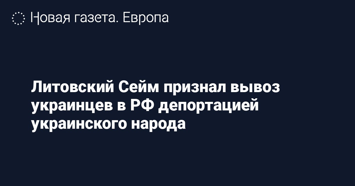 Сейм (парламент) Литвы признал вывоз граждан Украины на территорию России депортацией украинского народа. Об этом сообщает Delfi.