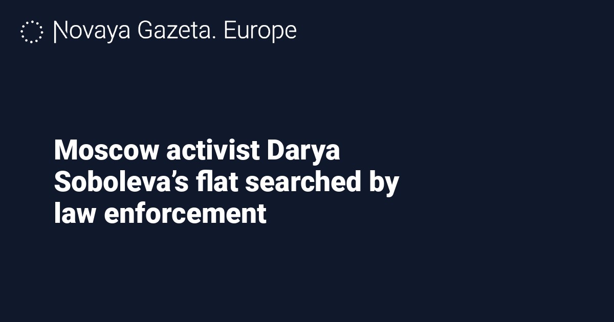 Law enforcement officers conducted a search in the flat of the employee of the the Moscow project “Otkrytoe prostranstvo” (“Open space”) Darya Soboleva, reports OVD-Info, Russian human rights group that monitors political arrests.