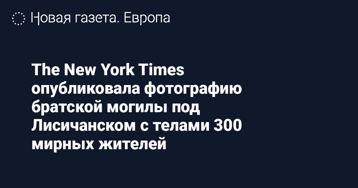 Газета The New York Times опубликовала фотографию братской могилы под Лисичанском Луганской области. По данным издания, в ней лежат не менее 300 тел убитых мирных жителей.