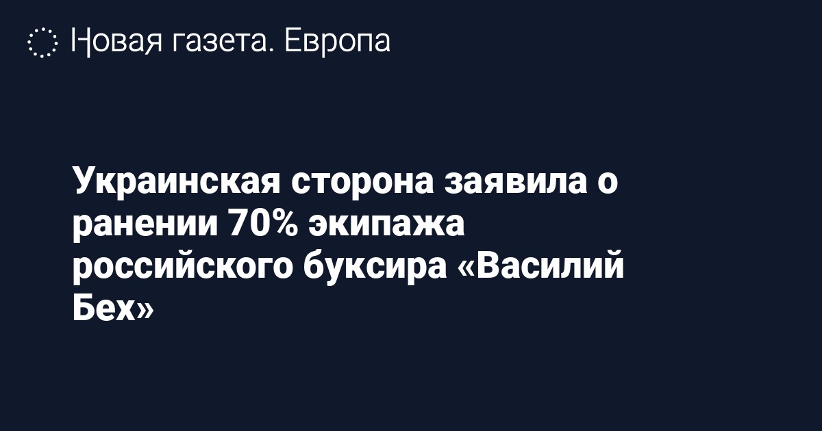 На российском буксире «Василий Бех» в результате удара по нему ВМС Украины ранено 70% экипажа, судьба остальных — неизвестна. Об этом говорится в телеграм-канале горсовета Одессы со ссылкой на оперативное командование «Юг».