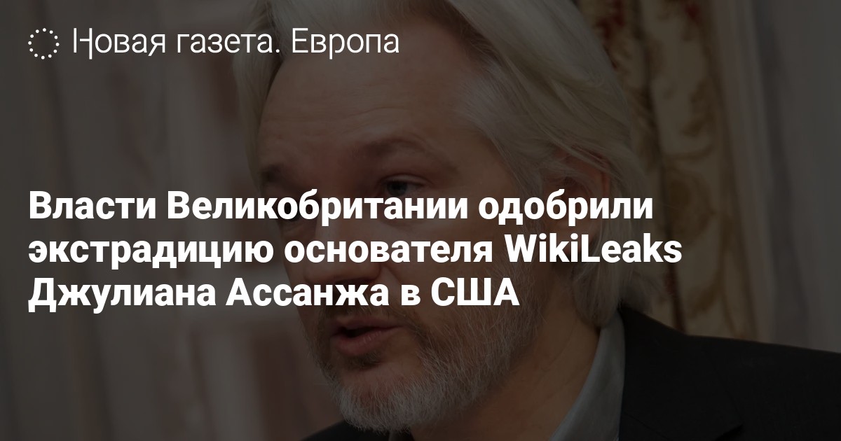 Министерство внутренних дел Великобритании одобрило экстрадицию в США основателя WikiLeaks Джулиана Ассанжа. О решении сообщает Associated Press.