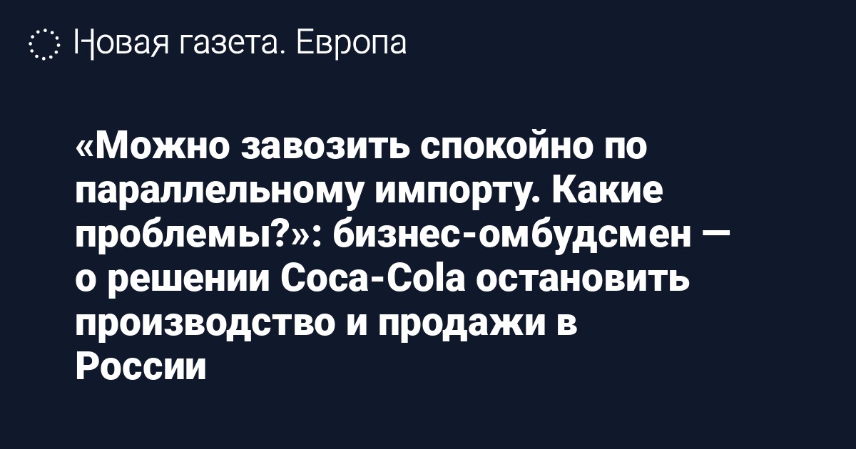 «Продукцию Coca-Cola можно завозить спокойно по параллельному импорту и покупать, условно, через Alibaba. Какие проблемы?» — сказал Титов в интервью ТАСС.