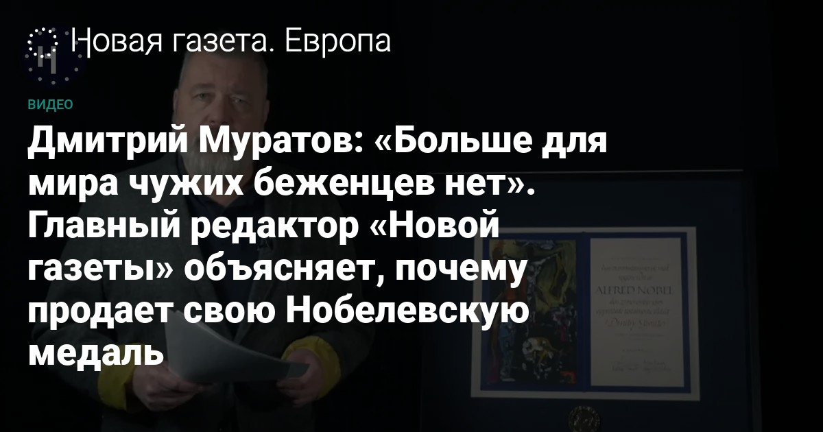 В этом видео, которое мы публикуем сегодня, Дмитрий Муратов объясняет, что движет им и его редакцией: «Мы поняли, что чтобы помочь жертвам этой войны, можно и нужно отдать самое дорогое и значимое, что у тебя есть».