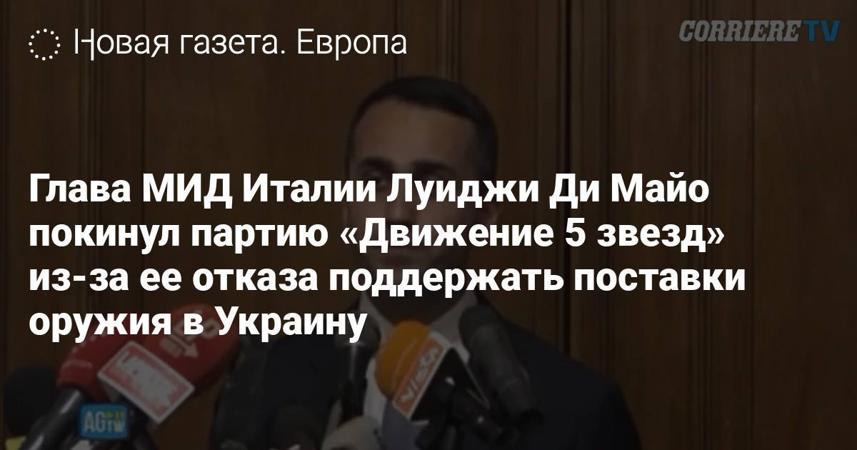 Глава МИД Италии Луиджи Ди Майо покинул партию «Движение 5 звезд», обвинив ее главу и экс-премьера Джузеппе Конте в подрыве усилий правительства по поддержке Украины. Ранее в партии — самой большой в итальянском парламенте — возникли разногласия по вопросу необходимости поставок оружия в Украину.
