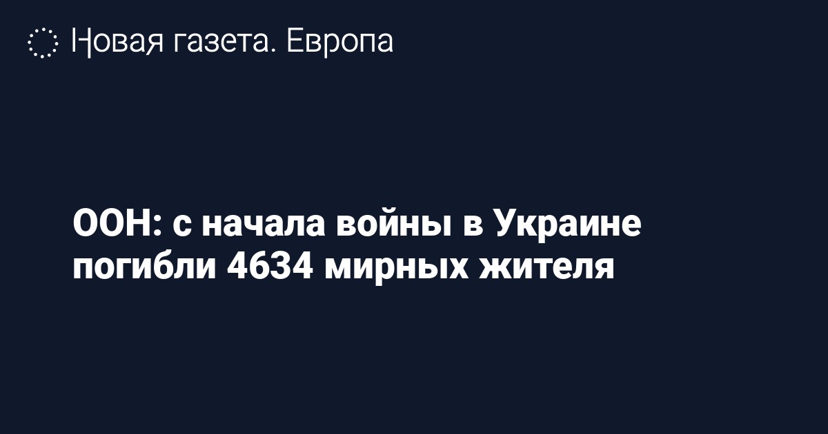 С начала войны в Украине погибли 4634 мирных жителя, еще 5769 человек были ранены. Об этом сообщает Управление верховного комиссара ООН по правам человека.