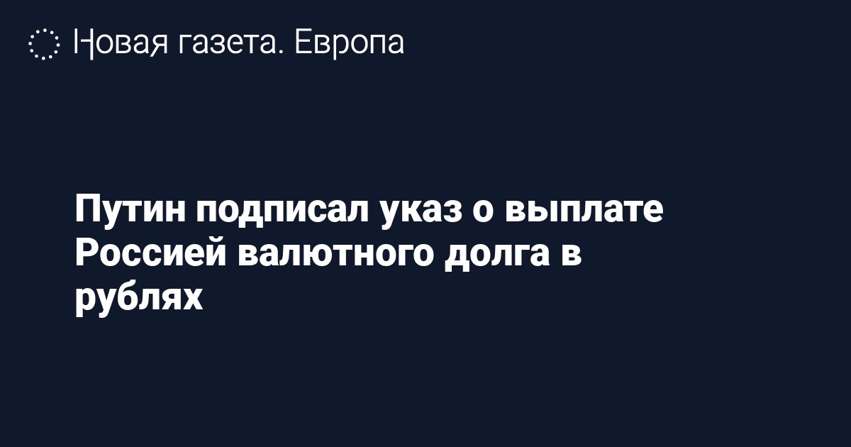 Президент России Владимир Путин подписал указ, по которому страна сможет выплачивать валютный долг в рублях. Он опубликован на официальном интернет-портале правовой информации.