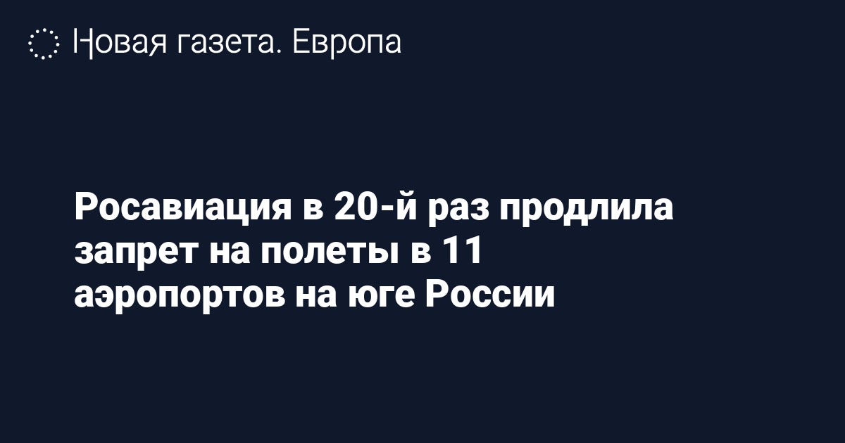 Запрет продлен до 30 июня. Он распространяется на аэропорты Анапы, Белгорода, Брянска, Воронежа, Геленджика, Краснодара, Курска, Липецка, Ростова-на-Дону, Симферополя и Элисты. Впервые ограничения ввели 24 февраля, когда началась война с Украиной.