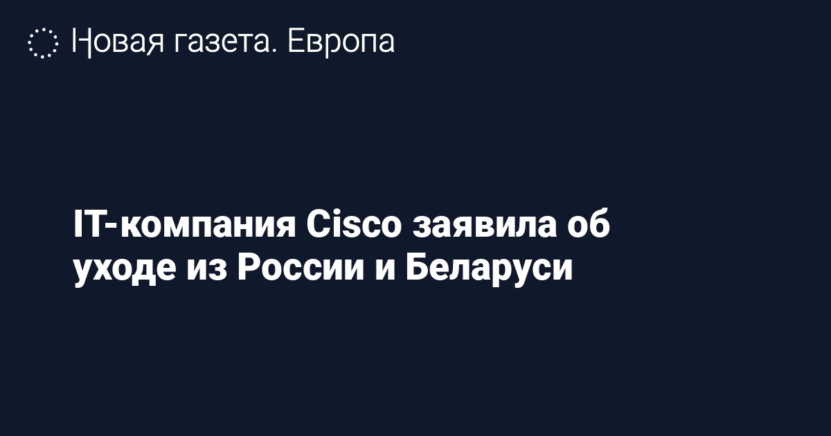 Американская IT-компания Cisco, выпускающая сетевое оборудование, объявила о своем уходе из России и Беларуси. Заявление опубликовано на сайте компании.