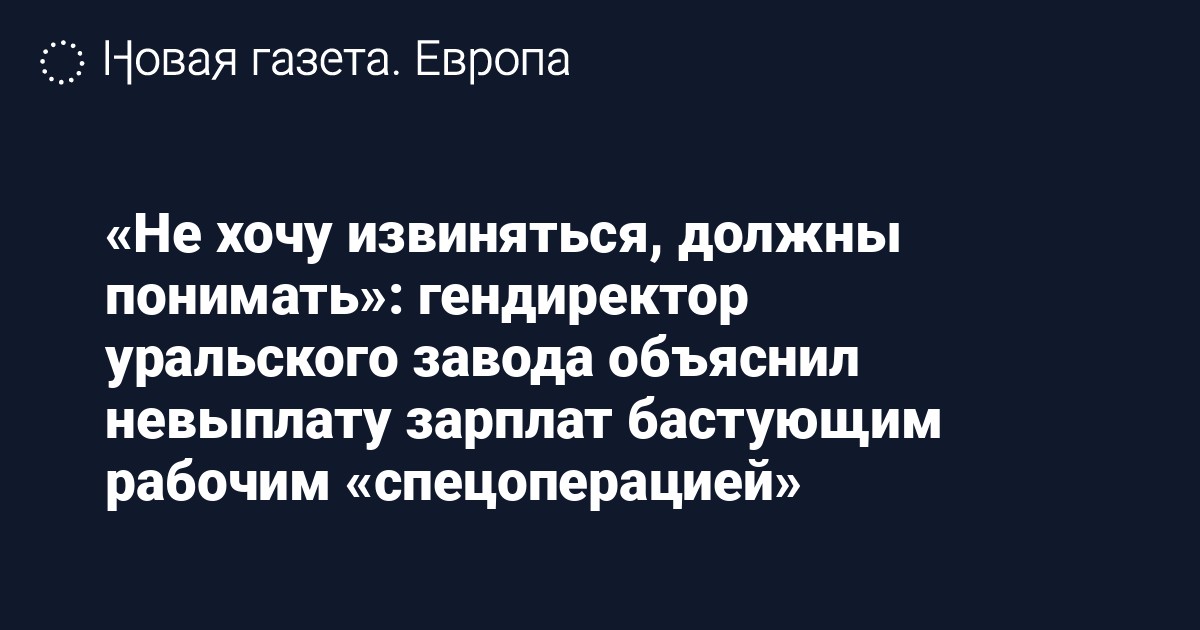 Генеральный директор Уральского компрессорного завода Денис Тасаков объяснил невыплату зарплат рабочим «спецоперацией» и призвал бастующих сотрудников с пониманием отнестись к отсутствию денег. Его словам цитирует местный портал ЕАН.