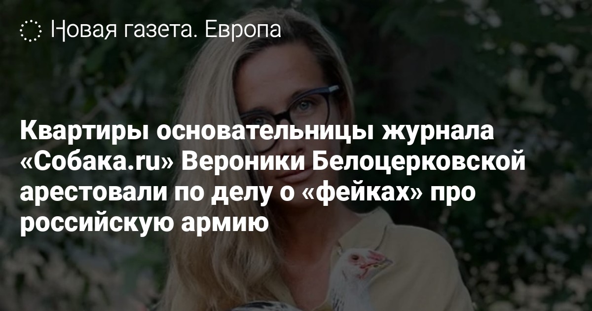 Басманный районный суд Москвы арестовал квартиры основательницы петербургского журнала «Собака.ru» Вероники Белоцерковской. Об этом агентству «Москва» сообщила пресс-секретарь суда.