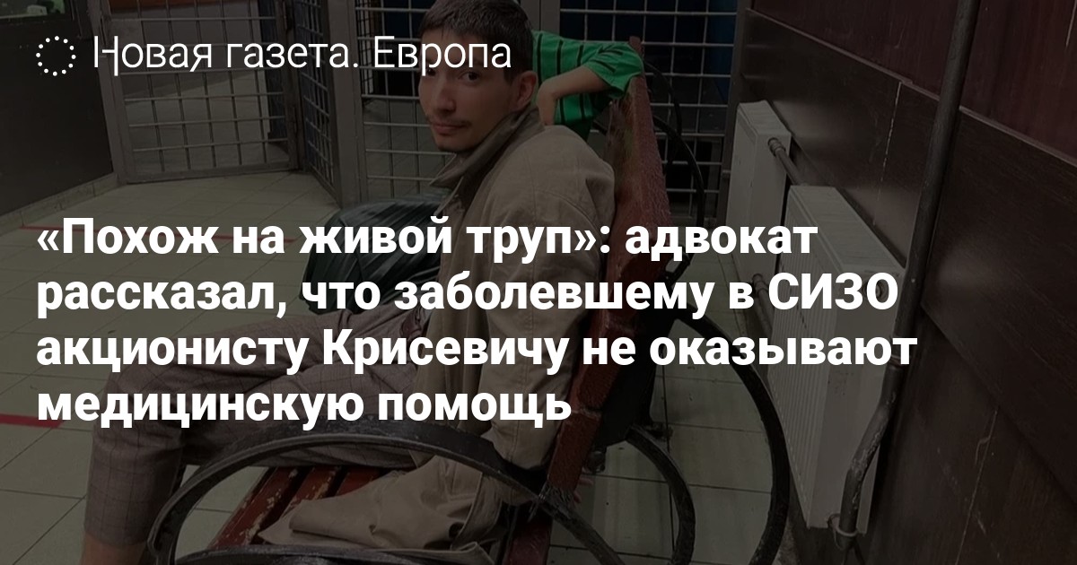 «Похож на живой труп»: адвокат рассказал, что заболевшему в СИЗО акционисту Крисевичу не оказывают медицинскую помощь