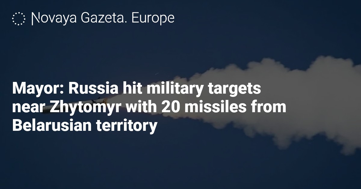Russia’s military has fired 24 missiles from the Belarusian territory upon military targets around Ukraine’s Zhytomyr, says Serhiy Sukhomlyn, the city’s mayor. The city itself was unhurt.