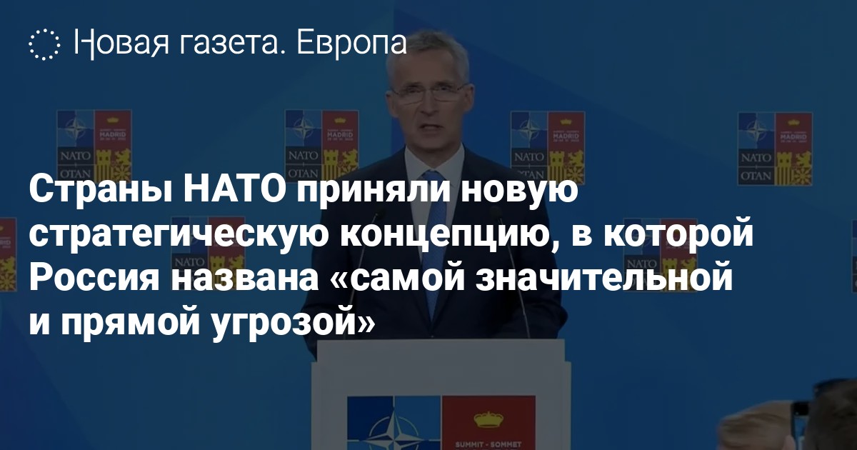 Страны Организации Североатлантического альянса (НАТО) на саммите в Мадриде приняли новую стратегическую концепцию, в которой Россия названа «самой значительной и прямой угрозой». Об этом говорится в сообщении на сайте альянса.