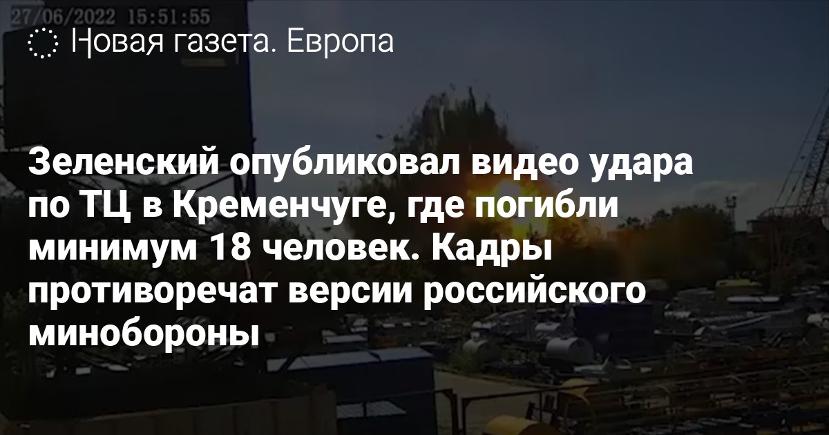 Президент Украины Владимир Зеленский в своем вечернем видеообращении показал видео, на котором, по его словам, зафиксировано попадание ракеты по торговому центру «Амстор» в Кременчуге, где погибли по меньше мере 18 человек. Кадры на видео противоречат версии российского минобороны.