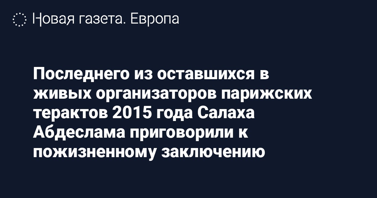 Салах Абдеслам был признан виновным по обвинению в терроризме и убийстве. Как отмечает агентство, это один из самых суровых приговоров, ранее выносившийся судом Франции лишь четыре раза.