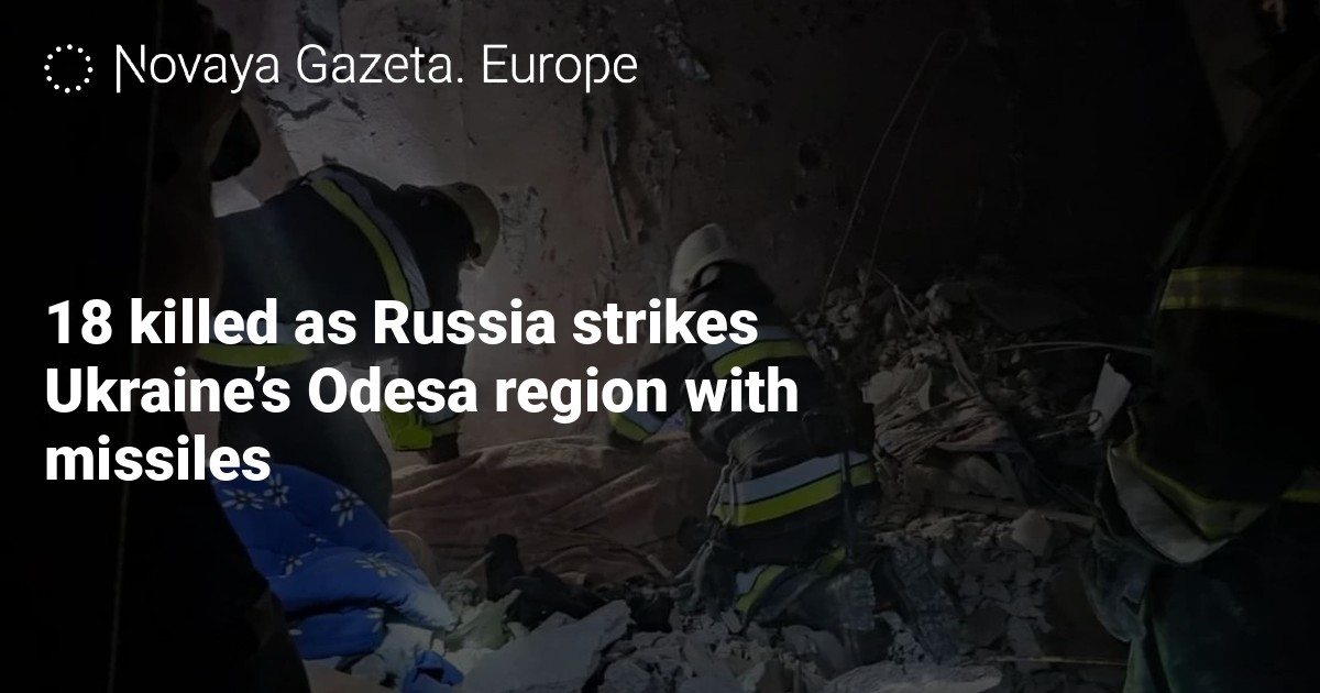 At least 18 civilians were killed by Russia’s missile strikes in Ukraine’s Odesa region; 31 people were injured, including three children and a pregnant woman, according to the country’s State Emergency Service.