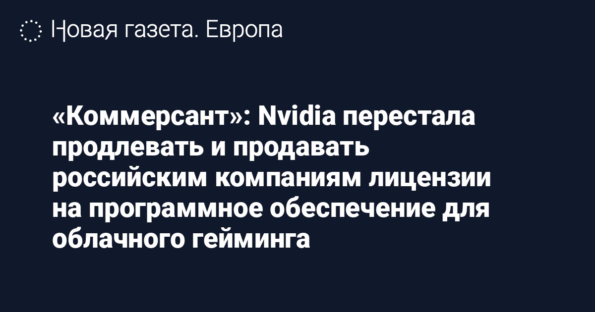 Американская компания Nvidia не будет продлевать и продавать российским компаниям новые лицензии на свое программное обеспечение для облачного гейминга. Об этом «Коммерсанту» рассказали основатель сервиса Loudplay Виталий Стародубов и сотрудник крупного IT-холдинга.