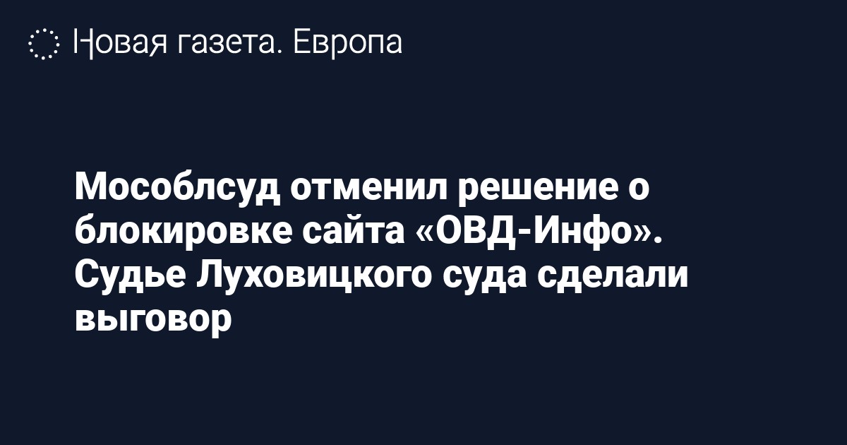Московский областной суд отменил решение Луховицкого районного суда о блокировке сайта правозащитного проекта «ОВД-Инфо» и отправил дело на новое рассмотрение, а судье вынесли выговор. Об этом сообщает сам проект.
