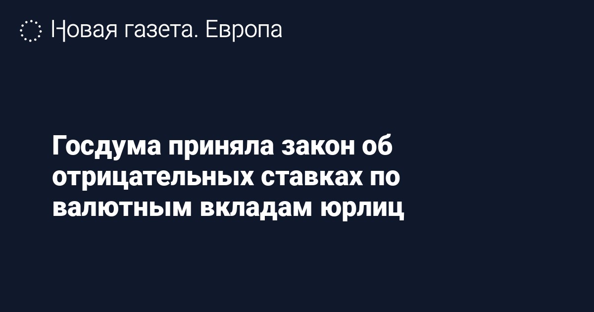 Госдума РФ в третьем чтении приняла закон, позволяющий банкам устанавливать отрицательные ставки по валютным вкладам юридических лиц. Документ опубликован в электронной базе нижней палаты парламента.