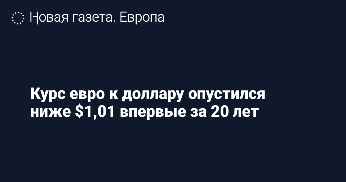Курс евро к доллару опустился ниже $1,01 впервые с декабря 2002 года. Об этом свидетельствуют данные торгов.