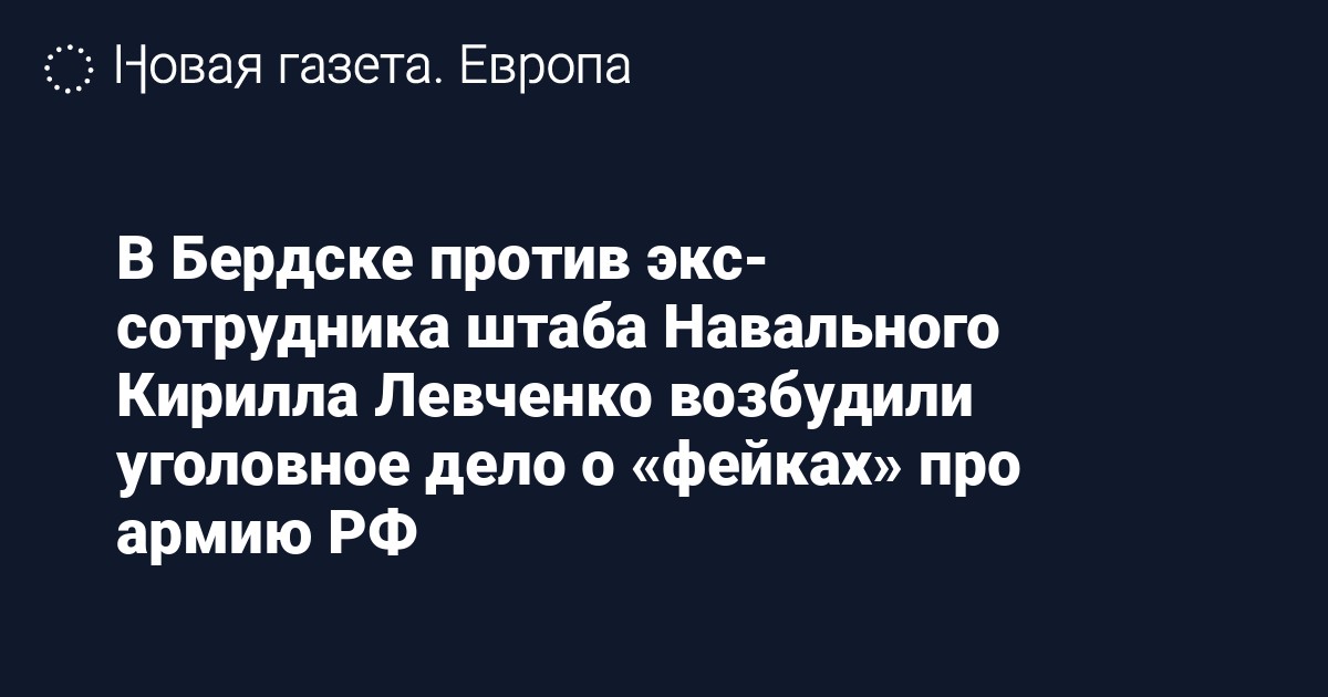 В Бердске Новосибирской области против Кирилла Левченко — бывшего кандидата в городской совет города и экс-сотрудника штаба Алексея Навального — возбудили уголовное дело о «фейках» про российскую армию (ст. 207.3 УК). Об этом рассказал сам Левченко в своем телеграм-канале.